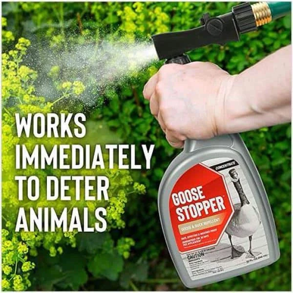 - Animal repellent – this highly effective solution is concentrate and repels geese, ducks, and other web footed animals