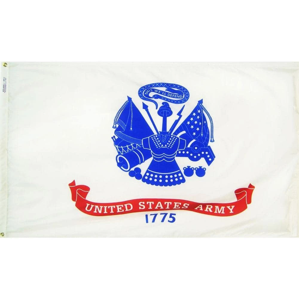 Show Your Support for our Active Military Personnel with the Annin 2 ft. x 3 ft. U.S. Army Flag. This flag is made of sturdy nylon and designed to fly in the lightest breeze. The Flag is grommeted and attaches quickly and easily to your flagpole. Annin is an Officially Licensed Manufacturer of U.S. Military Flags.