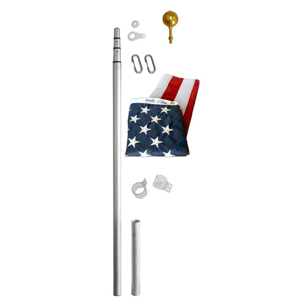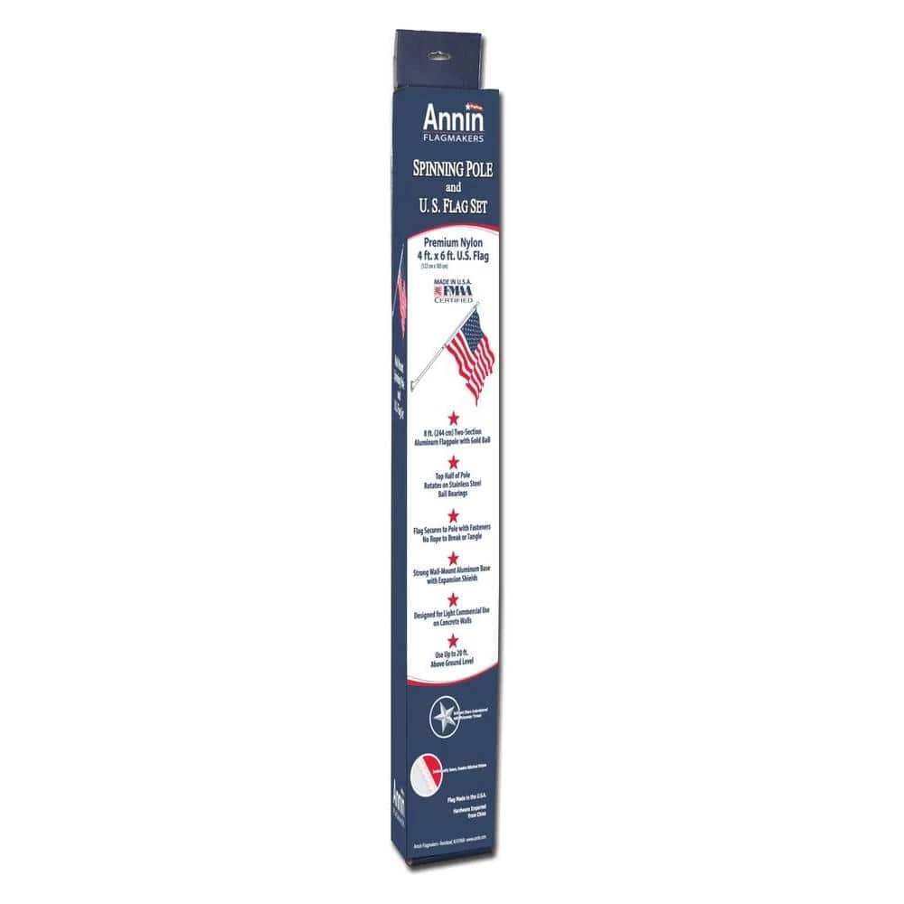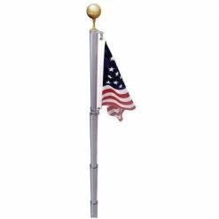Ideal for Municipal Buildings, Schools, Fire Houses and Shopping Centers, this flag and pole set is an affordable alternative to costly, commercially available wall mounted flagpoles. The top half of pole rotates on ball bearings so the flag will always wave free. No cords or rope to break or tangle. The two sections of the pole easily assemble and lock together, the pole then slides into the base where it is tightly secured by two thumb screws.