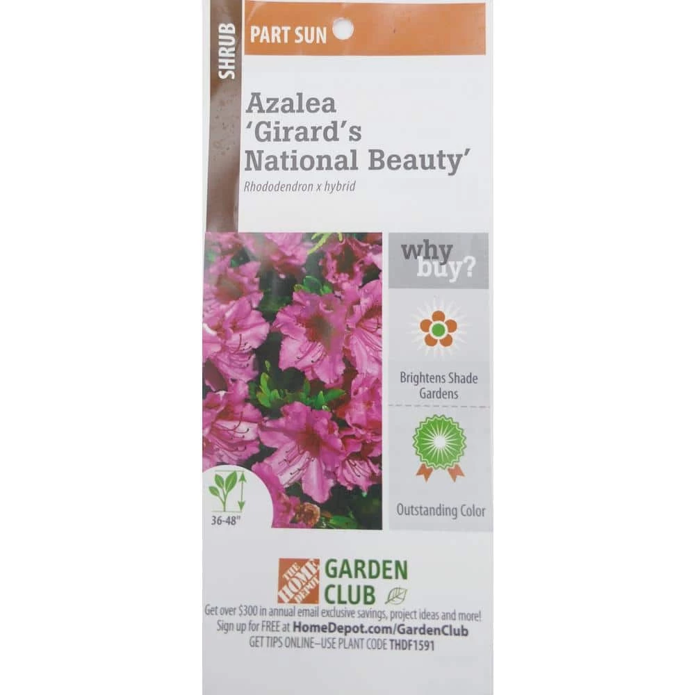 Add a splash of pink color to your garden with this stunning National Beauty Azalea. Perfect for borders or hedges, this low-maintenance shrub grows in full sun or partial shade and is drought and cold tolerant. At maturity, it can reach a size of 48 in. H x 48 in. w. The pink ruffled flowers attract butterflies and hummingbirds. This shrub will definitely turn heads and add a sense of passion and drama to your garden.