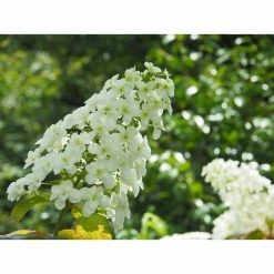 Snowflake Oakleaf Hydrangea blooms beautiful creamy white flowers in clusters. This shrub grows well in partial shade. This hydrangea grows to 6-10 ft. tall and 6-10 ft. wide with a fast growth rate. Flowers resemblance snowflakes and make a great flower cut. Excellent choice for beds, borders, hedges, containers and patios.