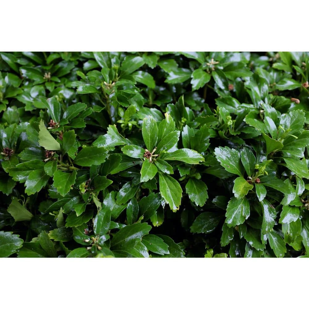 Pachysandra terminalis, commonly called Japanese pachysandra, is a shrubby, evergreen ground cover. Grows 8 in. to 12 in. high and spreads by rhizomes to form a dense carpet of rich, dark green foliage. Pachysandra thrives in the shade under large trees.