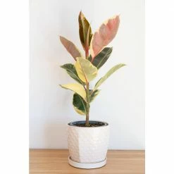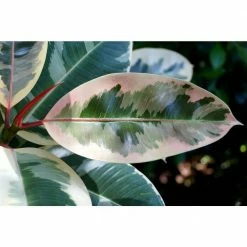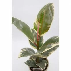 Ficus Elasica Tineke also known as Variegated Rubber Plant has a beautiful glossy foliage of mixed patterns of dark green, light green and cream. This rubber plant is originated from Southeast Asia and can grow up to 5 ft. x 6 ft. tall as houseplant. Place Ficus Tineke in areas with bright, indirect light and water it once a-week when the top 1 in. to 2 in. of soil is dry for best results in growing. Ficus Tineke is great for both summer patio display and indoors in cold weather.