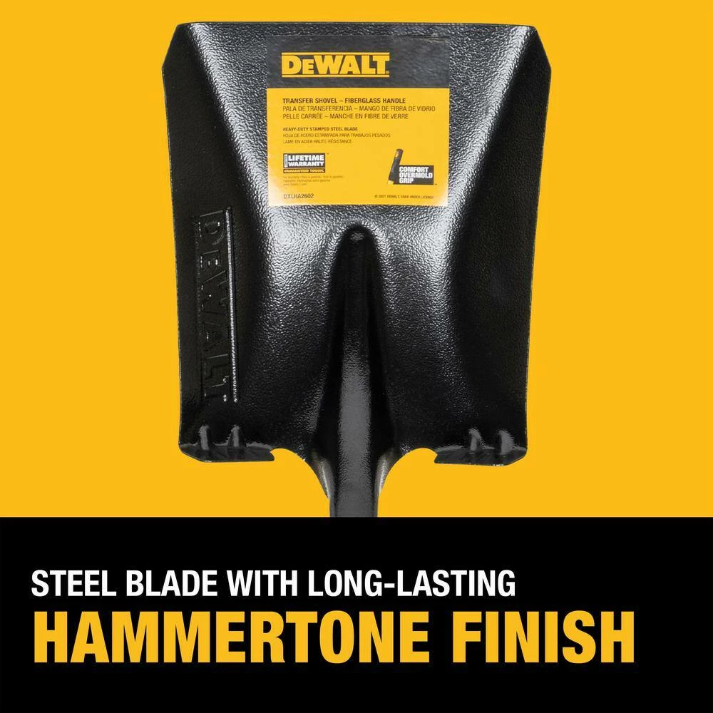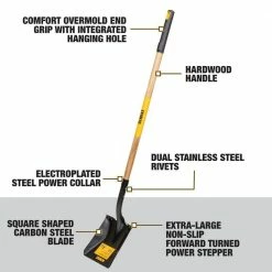Transfer loose garden materials such as gravel, rocks, and cutting sod with the 49 in. Hardwood Handle Transfer Shovel. This high-strength Transfer Shovel was built with a multi-step hammertone finish designed for long-term use, and a high-endurance, carbon steel blade that seamlessly lifts and moves compacted garden material. Keep your workspace organized with the built-in hanging hole which offers versatile storage options. Get the stability needed for scooping with the extra-large forward turned punch embossed power stepper and steel power collar, while the dual stainless steel rivets keep the shovel head attached to the handle. A long, natural hardwood handle helps reduce strain on the back and knees during prolonged use, and the overmold end-grip provides comfortable handling during prolonged use.