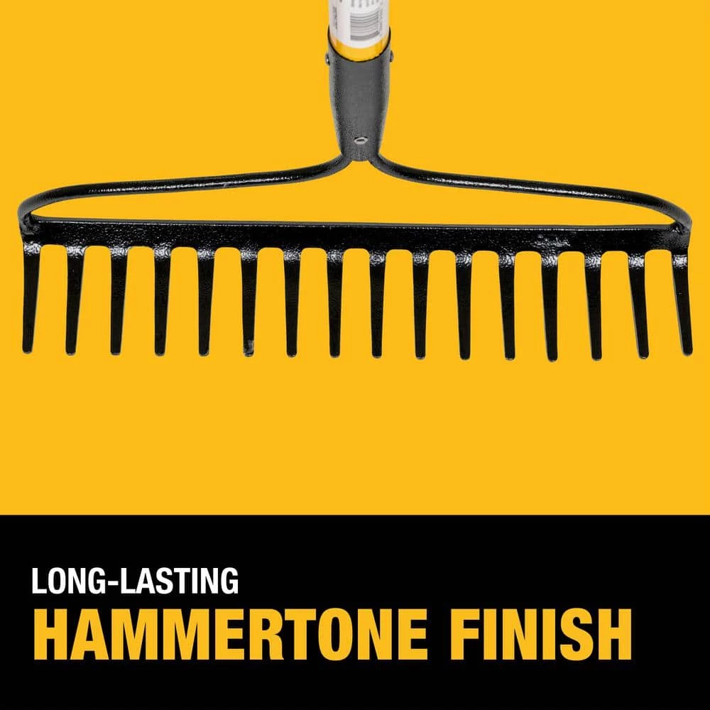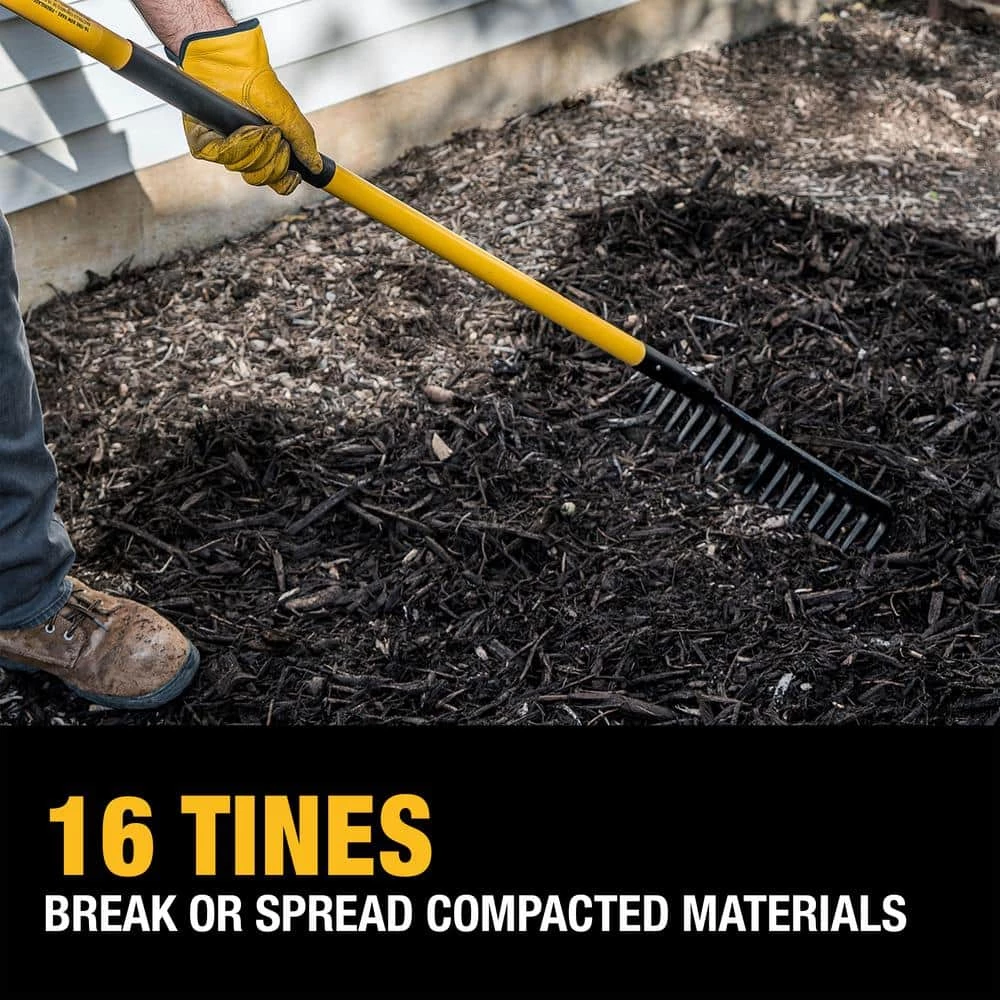 - PRO-GRADE STABILITY AND PERFORMANCE: Dual stainless steel rivets and carbon steel ferule attach the rake tines to heavy-duty weather resistant fiberglass handle