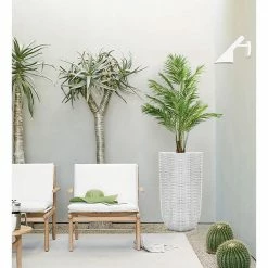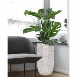 - Tall planter is handcrafted to resemble a floridian rattan