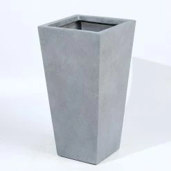 This tall and distinctive planter is the perfect addition to any front entrance. This design showcases a modern, sleek square tapered design, finished in a neutral light gray hue perfect for the modern home. Designed to live outdoors, it is crafted from weather-resistant magnesium oxide material that does not mind UV light beaming down or rainstorms rolling through, and this planter is durable and designed for all seasons. The planter includes a drainage hole so you can avoid over watering your plant. It also includes a drainage plug, so you can place it indoors to freshen up your home as well. Whether on your porch, in your sun room or entryway, this planter is the perfect complement to your style.