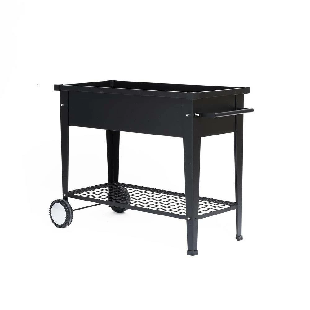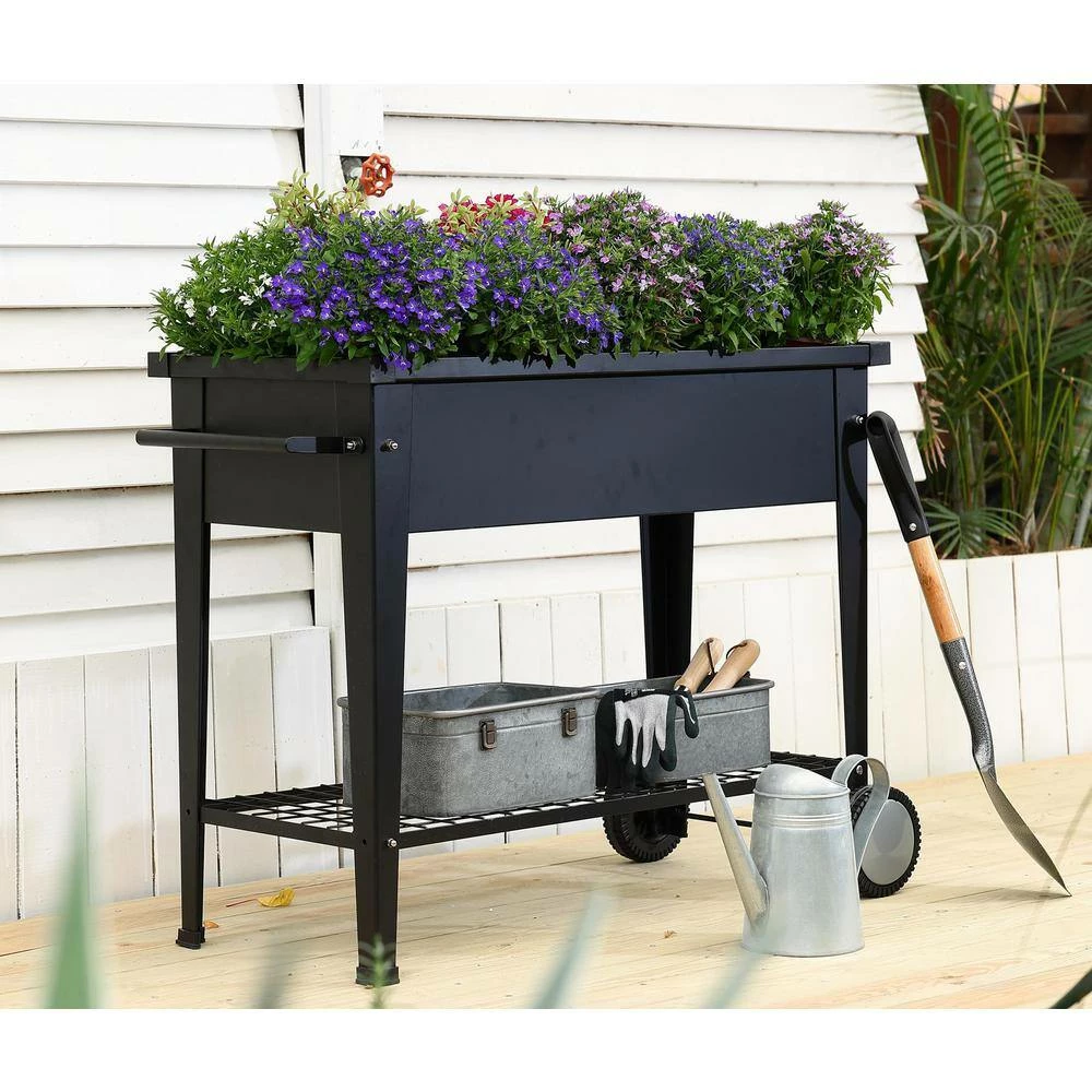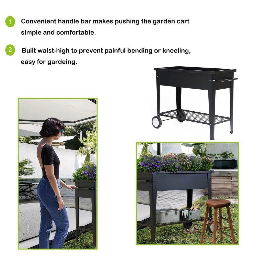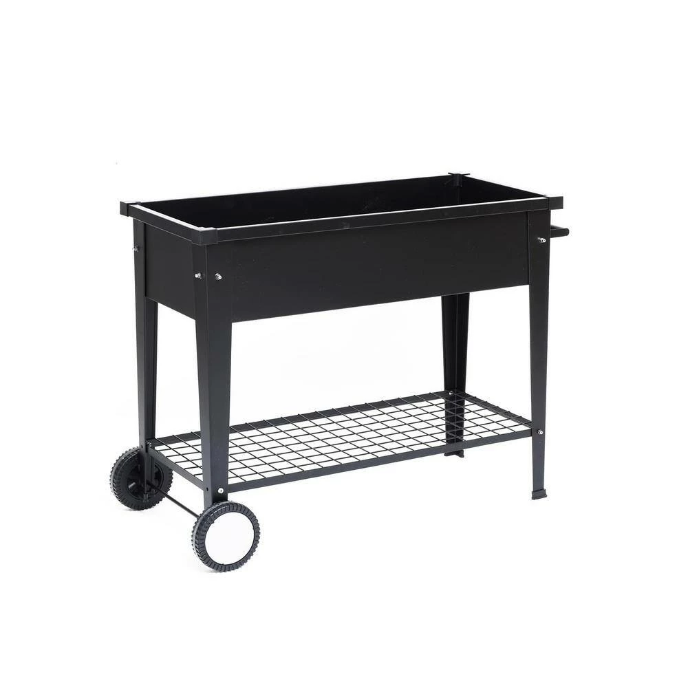 You will love the ease of this mobile planter that allows you to move it around to get maximum Sun or protect your plants from harsh weather. This is a convenient way to start your own garden no matter the size of your yard, This metal garden planter box makes it easier to maintain your plants, vegetables or flowers by moving it easily as needed and the drainage hole in the bottom helps prevent over watering your plants. The ergonomic height of the raised bed is waist level which eliminates the need for bending or kneeling, preserving your back and knees. The 2 wheels and ergonomic handle bar allow the cart to move easily from the shade to the Sun as needed. The large planter box allows you to grow a variety of plants and flowers, such as vegetables, herbs and other plants. The open shelf on bottom provides a place for your garden tools, watering can and extra potting soil. Made of premium metal material, the outdoor garden box can serve you for many years to come. Enjoy the best of gardening with ease and share the fruits of your labor with your family and friends, This mobile raised garden bed planter is perfect for the expert gardener and hobbyist.