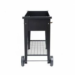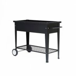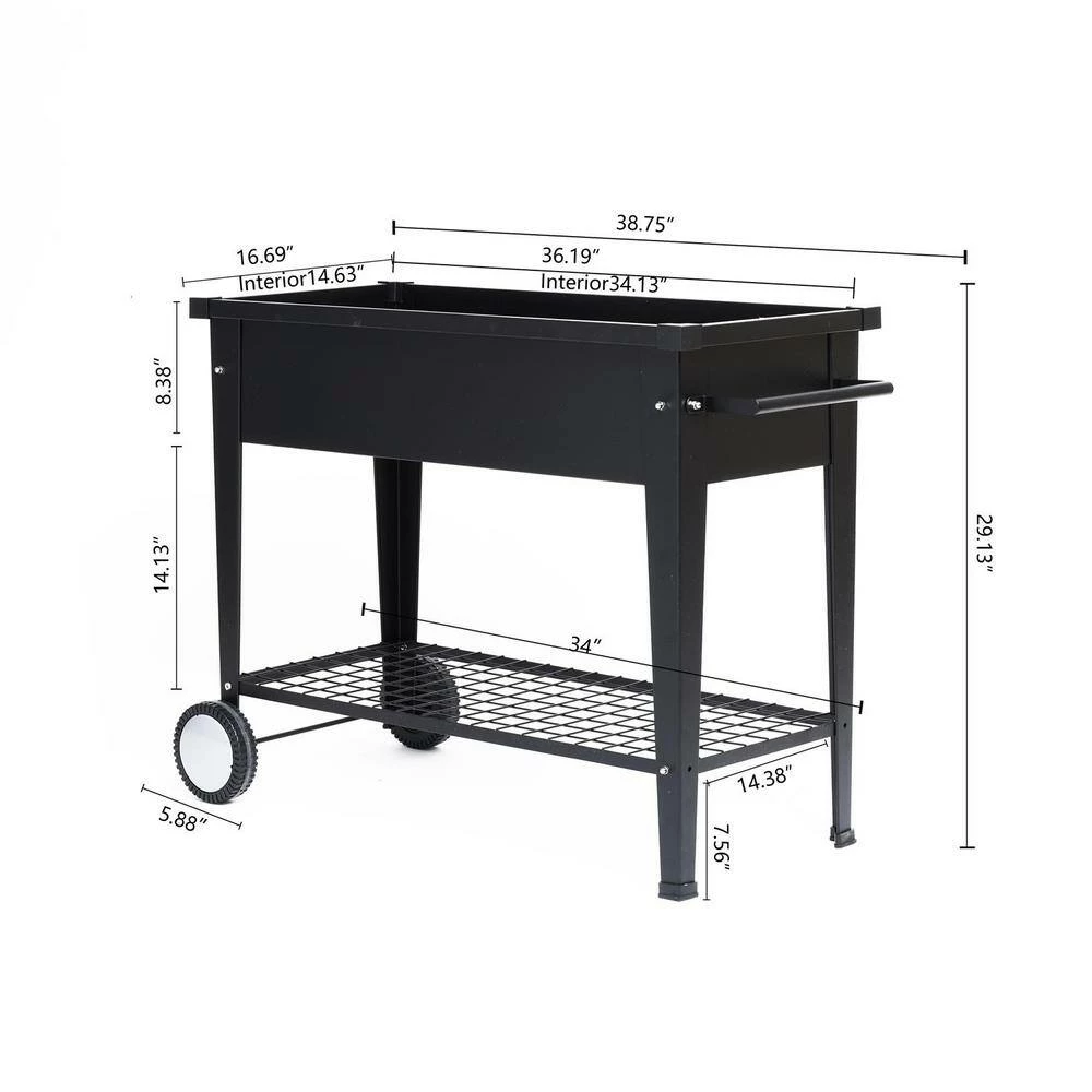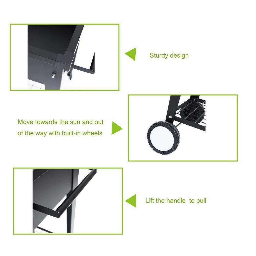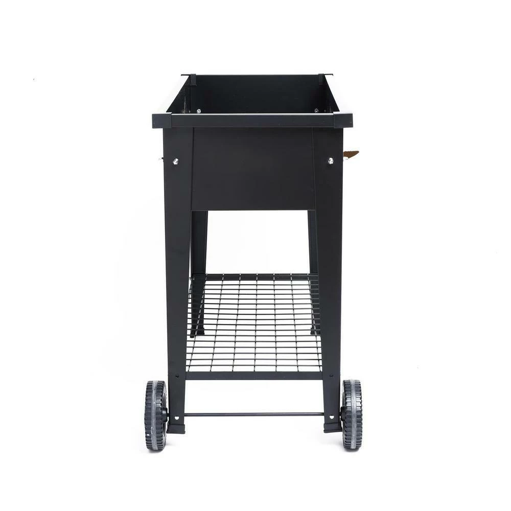 You will love the ease of this mobile planter that allows you to move it around to get maximum Sun or protect your plants from harsh weather. This is a convenient way to start your own garden no matter the size of your yard, This metal garden planter box makes it easier to maintain your plants, vegetables or flowers by moving it easily as needed and the drainage hole in the bottom helps prevent over watering your plants. The ergonomic height of the raised bed is waist level which eliminates the need for bending or kneeling, preserving your back and knees. The 2 wheels and ergonomic handle bar allow the cart to move easily from the shade to the Sun as needed. The large planter box allows you to grow a variety of plants and flowers, such as vegetables, herbs and other plants. The open shelf on bottom provides a place for your garden tools, watering can and extra potting soil. Made of premium metal material, the outdoor garden box can serve you for many years to come. Enjoy the best of gardening with ease and share the fruits of your labor with your family and friends, This mobile raised garden bed planter is perfect for the expert gardener and hobbyist.