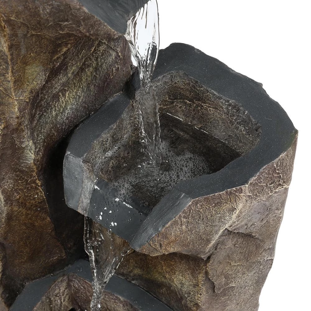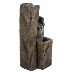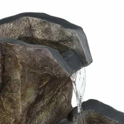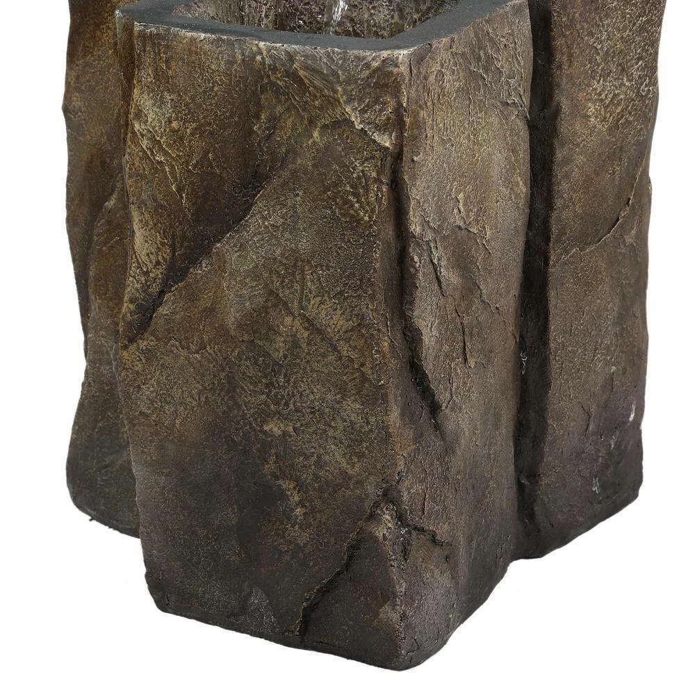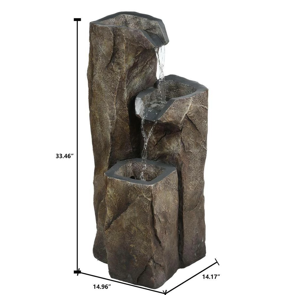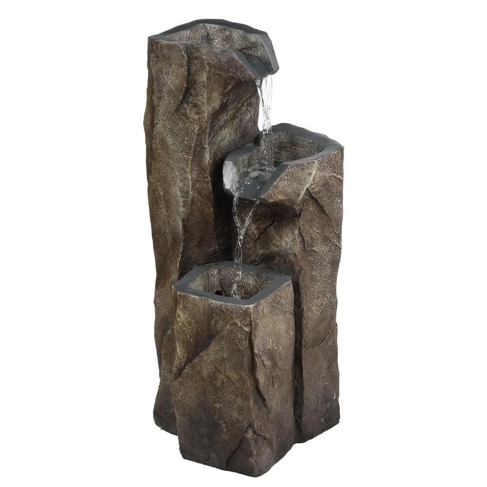 Incorporate the soothing sights and sounds of water into your yard, garden or landscape with this 3-column sculpture. The beauty of the fountain is featured in the weathered rock style of the columns. Tranquil water cascades down each level. Illumination lights the fountain at night for increased visual appeal. Cast in poly resin and realistically hand-painted to capture the look of weathered rock in its natural gray and brown hues, this water feature creates a peaceful garden sanctuary for your outdoor living space. The water is recirculated using an electric pump (included).