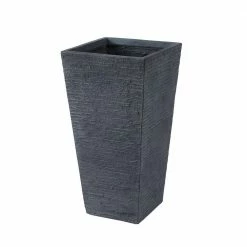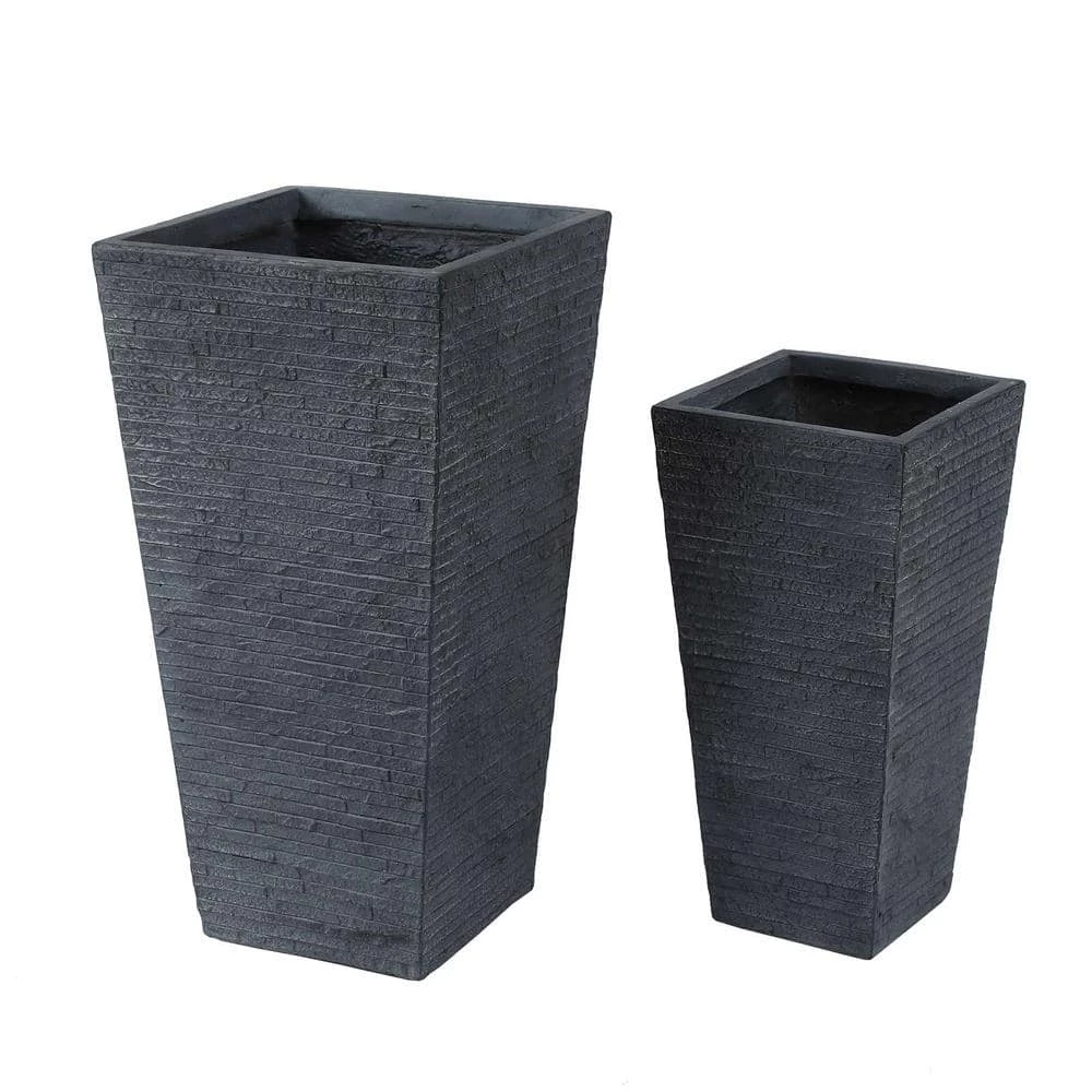 This tall and distinctive planter set are the perfect addition to any front entrance. This design showcases a modern, square tapered design, finished in a textured gray finish perfect for the modern home. Designed to live outdoors, it is crafted from weather-resistant magnesium oxide material that does not mind UV light beaming down or rainstorms rolling through, and each planter is durable and designed for all seasons. The planter includes a drainage hole so you can avoid over watering your plant. It also includes a drainage plug, so you can place it indoors to freshen up your home as well. Whether on your porch, in your sun room or entryway, this planter is the perfect complement to your style.