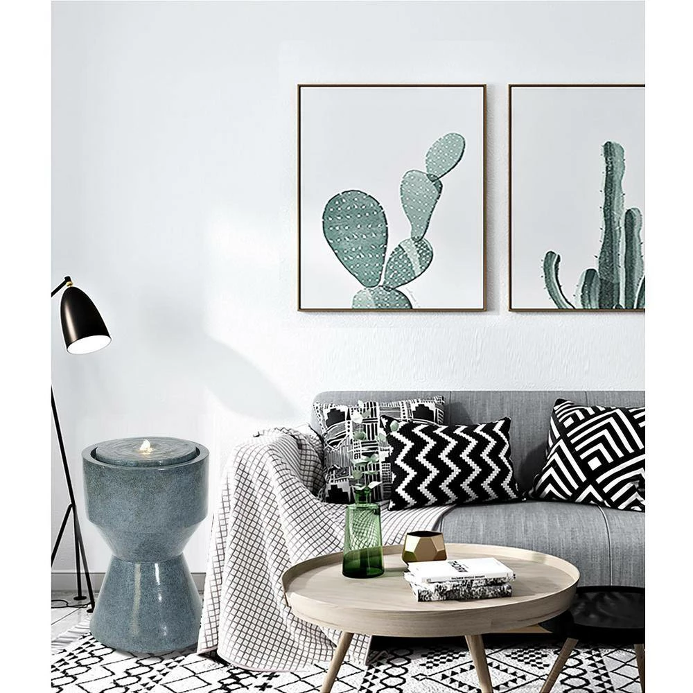 For something a bit more on the modern side, this gorgeous fountain is the perfect piece for your decor. Add the soothing sound of water easily to any indoor or outdoor space with this special fountain. It is crafted using a lightweight and easy-to-maintain poly resin material, and showcases a hourglass silhouette. The fountain features a hand-painted, glazed finish to not only enhance the functionality but to also make it easier to clean and maintain. This fountain arrives with a recirculating pump that keeps the water flowing. The top has an LED light that creates a soothing glow to complement the calming water sounds. It measures 15.7 in. tall, so it can fit almost any space in your home or office – great for beside your favorite chair, as a centerpiece, in your home office, or on the patio. Let it ease your body and mind, embellish your fashionable warm home.