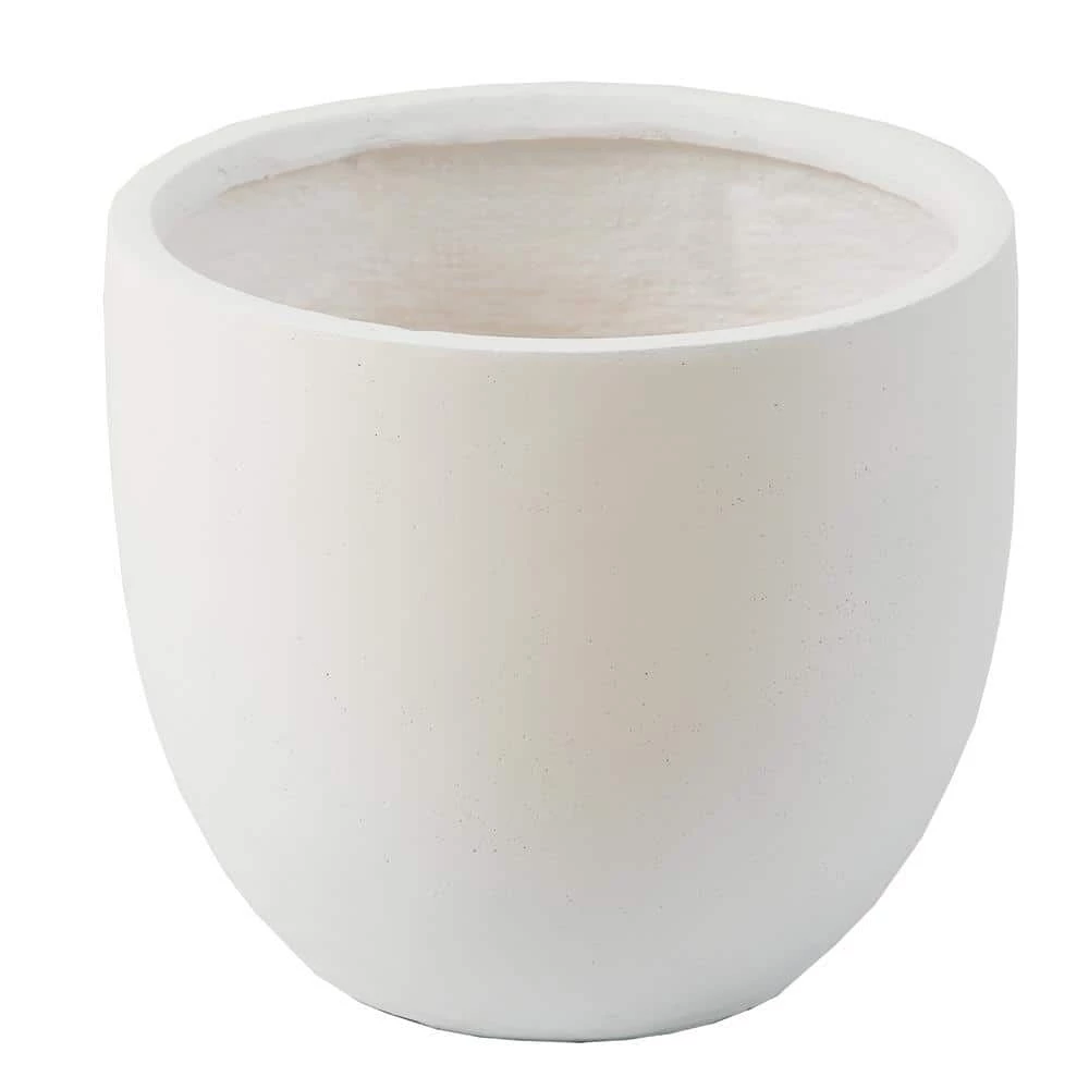 This smooth, white finish, round pot planter is made of durable fiberclay, and is suitable for year round use outdoors in your garden, patio, or porch. With its beautifully smooth finish, the round planter will make a warm ambiance to your indoors as well. The planter weighs only 6.2 lbs. making it easy to move your planters from indoors to outdoors as needed. The planter includes a drainage hole.