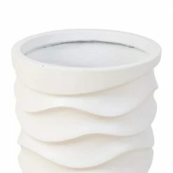 This wavy design, white finish, round planter set is made of durable MgO fiberclay, and is suitable for year round use outdoors in your garden, patio, or porch. With its beautiful white finish, the planters will make a warm ambiance to your indoors as well. The large planter is 20.1 in. H, and is ideal for your larger foliage and plants. The smaller planter is 18.1 in. H, and is ideal for your smaller to medium foliage and plants. With its modern flair, it is sure to add the finishing touch to your decor. The planters include a drainage hole.