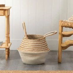 If you’re looking for a cute, trendy accent to house your favorite faux-bulous plant, or a little extra-storage, this jute and cotton basket is perfect. Handmade by artisans for long-lasting use, feel authentic and natural, especially if you enjoy an earthy palette. For easy storing, this basket has 2 handles on each side. Standing 11 in., add to any area in need of some texture and color. House pot sizes with a width less than 13 in. Has no drainage holes. Featuring intricate details, such as woven trim to offer a unique texture and a 1 of a kind look. Use this basket to plant your own creations, or simply display them empty – they really are that impressive.