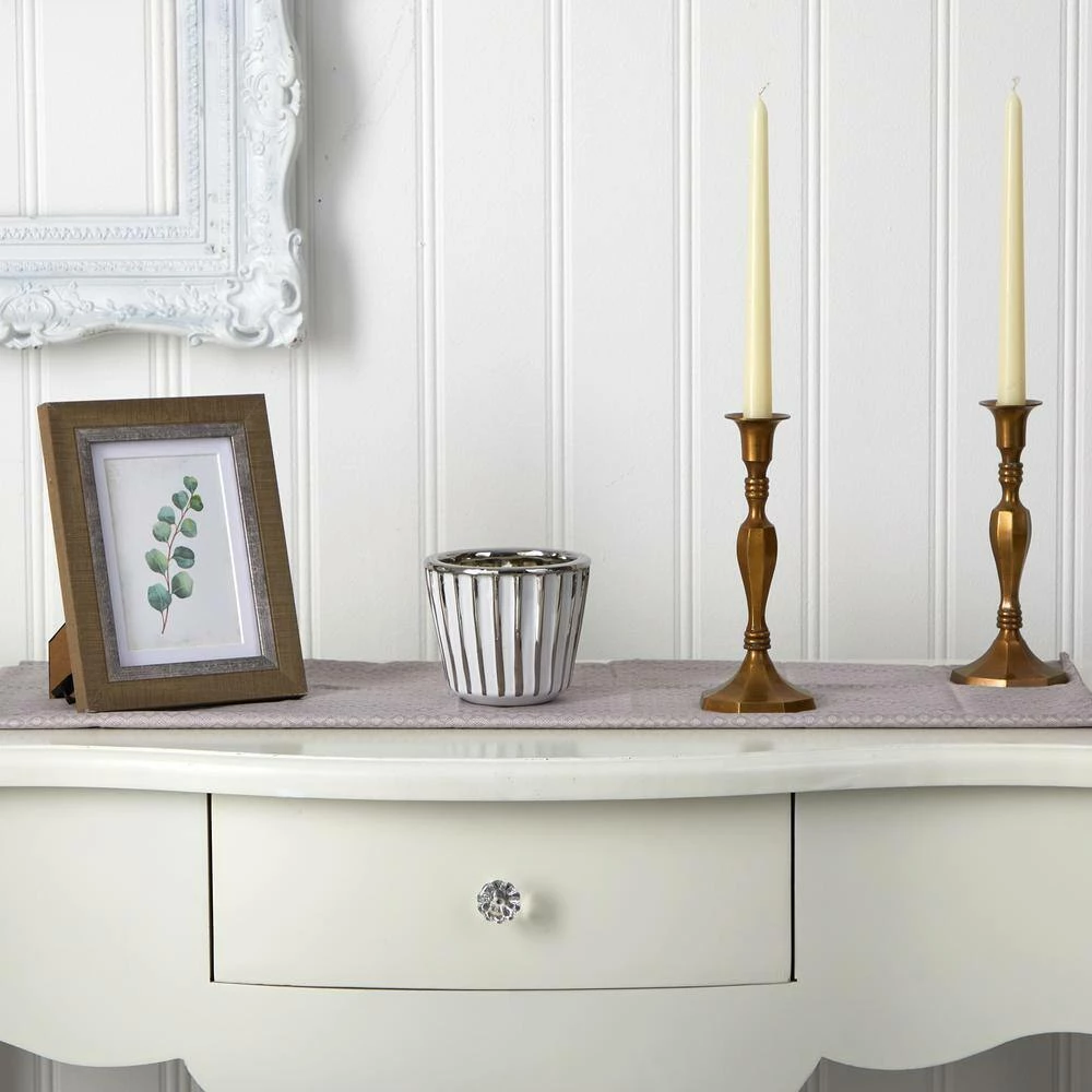 Is your space in need of some color, depth, and shape. If yes, you will love this white vase with silver trimming. DIY your dream arrangement and house your favorite flowers for a little dimension. Reaching 4.75 in. wide, you can create your dream arrangement today quickly and effortlessly. About Nearly Natural Inc. – For over 75-years, Nearly Natural Inc. has been providing conscientious consumers with beautiful alternatives to natural decorations. Employing and advised by naturalists who understand the live plant world, Nearly Natural is able to recreate the most realistic-looking decorative items for homes, offices, and businesses. Driven by a true commitment to customer service, attention to detail, and natural philosophy, Nearly Natural strives to bring customers the most beautiful, unique, and striking faux plants and floral on the market.