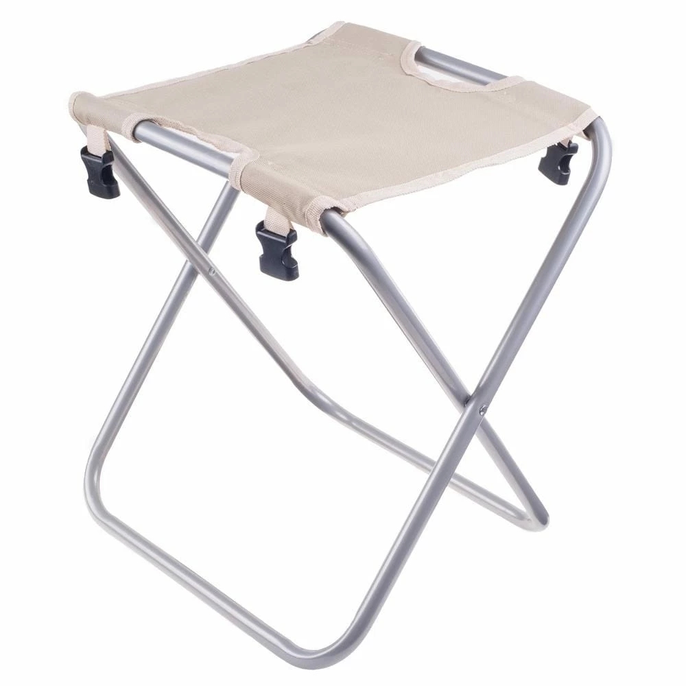 - PRODUCT DETAILS – Materials: Polyester, Wood, and Steel. Dimensions: Chair: (L) 11.5″ x (W) 11.5″ x (H) 16″; Bag: (L) 10″ x (W) 6″ x (H) 10″. Stool Maximum Weight Capacity: 250lbs. Color: Tan, Green, and Silver.