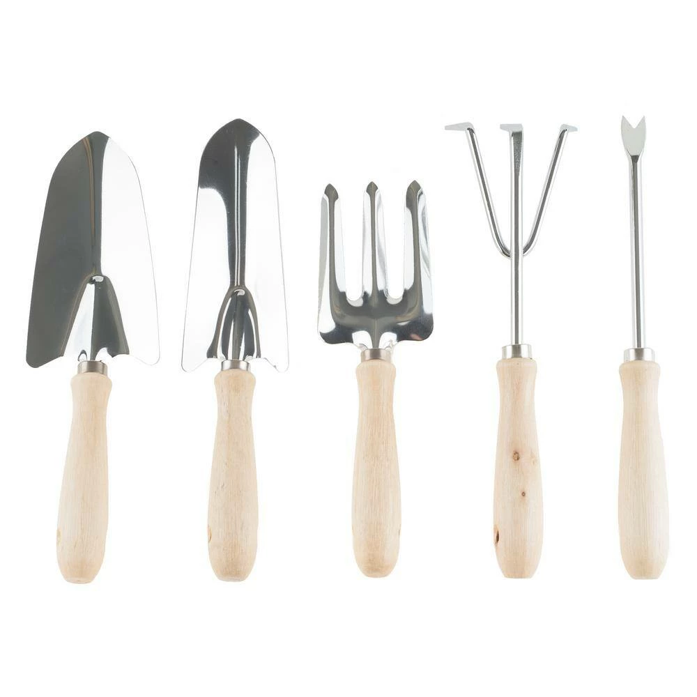 - INCLUDES 5 HAND TOOLS – This gardening set includes an 11.5-inch weeder, 10-inch fork, 11.5-inch trowel, 11.5-inch cultivator, and an 11.5-inch transplanter. Each steel tool has a handle shaped to fit your hands comfortably and help reduce fatigue.