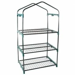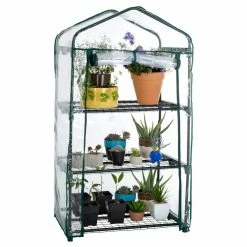 Protect your plants from frost, cold weather and pests with this 27.5 in. L x 19 in. W x 50 in. H 3-Tier Portable Greenhouse with Cover from Pure Garden. Gives seeds, seedlings and young plants an early start and extends the growing season. The stacked design is ideal for a small gardens, deck, balcony or patio to allow you to increase the number of plants you can grow in 1 place. A clear polyethylene full length cover features a roll-up zippered door for easy access. Includes 3 mesh steel shelves to hold several pots and trays.