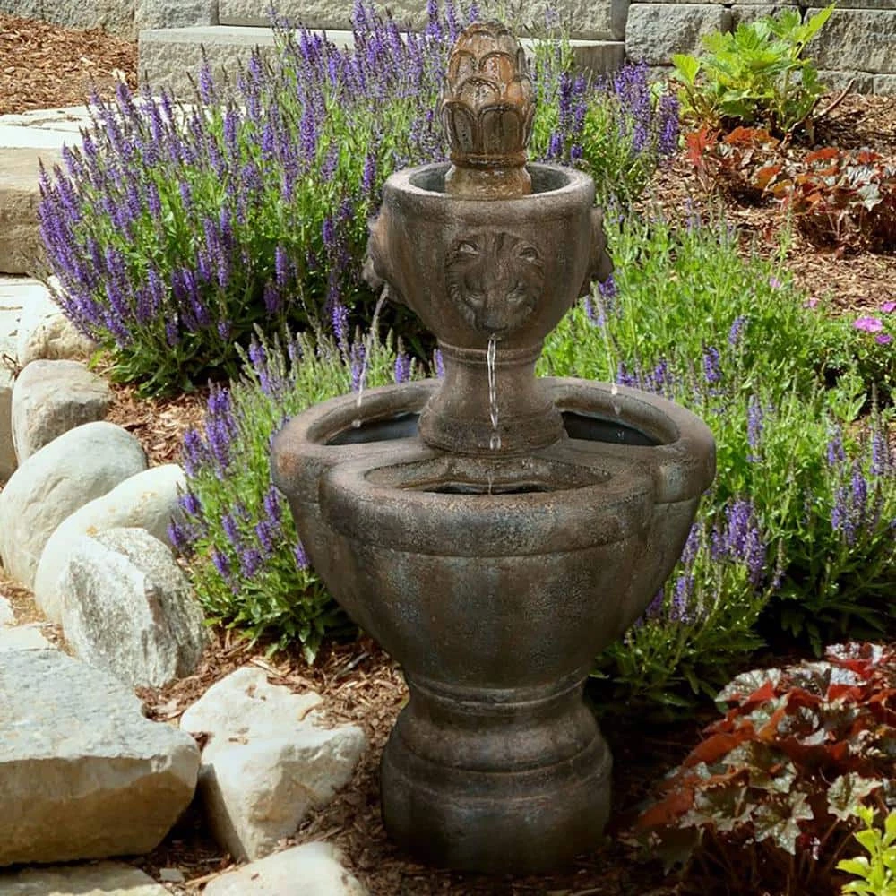 - UNIQUE OUTDOOR DÉCOR- This two tiered water fountain is truly an ideal blend of antique vintage design, classic elements, and royal charm, and it offers the tranquil and meditative sounds of running waters for a calming ambiance. With the water gently cascading down from the lion’s head into the bottom tier, the outdoor fountain is sure to be a vivid focal point on your patio, deck, front door, outdoor entranceway, lawn, or garden!