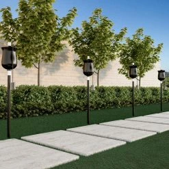 The Outdoor Torch Lamp by Pure Garden provides delightful lighting that makes a wonderful addition to any backyard or patio area. The beautiful metal lamp provides a soft illuminating glow with a natural flame to make your space feel like an outdoor oasis. More than just decoration, this torch lamp can be filled with fuels like citronella to also help keep insects and mosquitos away when you are outside for a party, BBQ, or relaxing. It features a long-lasting 7.5″ fiberglass wick and a safety lock fuel canister top with flame snuffer attached. The 3-part stake system allows the stand height to be adjustable and customizable to your needs and can be paired with other torches at different heights for a unique look. The light is easy to install and provides ambient outdoor lighting, making them a practical and stylish solution for any backyard, garden, walkway, path, patio, landscape, and more!