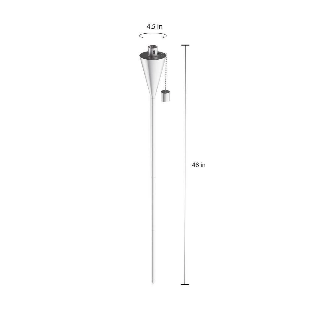 - PRODUCT DETAILS- Material: Stainless Steel. Dimension: 46 ” tall, 4.5″ diameter on fuel canister. 7.5″ round fiberglass wick. Torch does not include fuel.