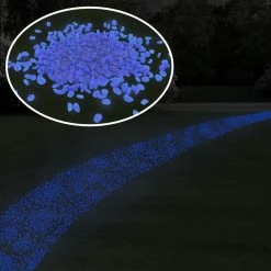 Add a fun, whimsical touch to any outdoor area with the 500-Count Glow in the Dark Pathway Stones in Blue by Pure Garden. The pebbles come in a pack of 500 and are powered by light absorbed from almost any source, including natural sunlight, as well as Fluorescent, UV or LED lamps. They make an excellent addition to a flower bed, fountain, pond or fairy garden and look great placed along a walkway, driveway or patio. The stones are white and then glow a bright blue when they are fully charged, creating a magical effect in any area.