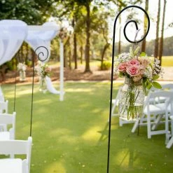 - SET OF TWO- This set of 65-inch tall shepherd hooks have dual forks that stake into the ground for easy installation and will add height and variety to your flower beds, patio, walkways and lawn. These hooks make great gifts and wedding decorations too!