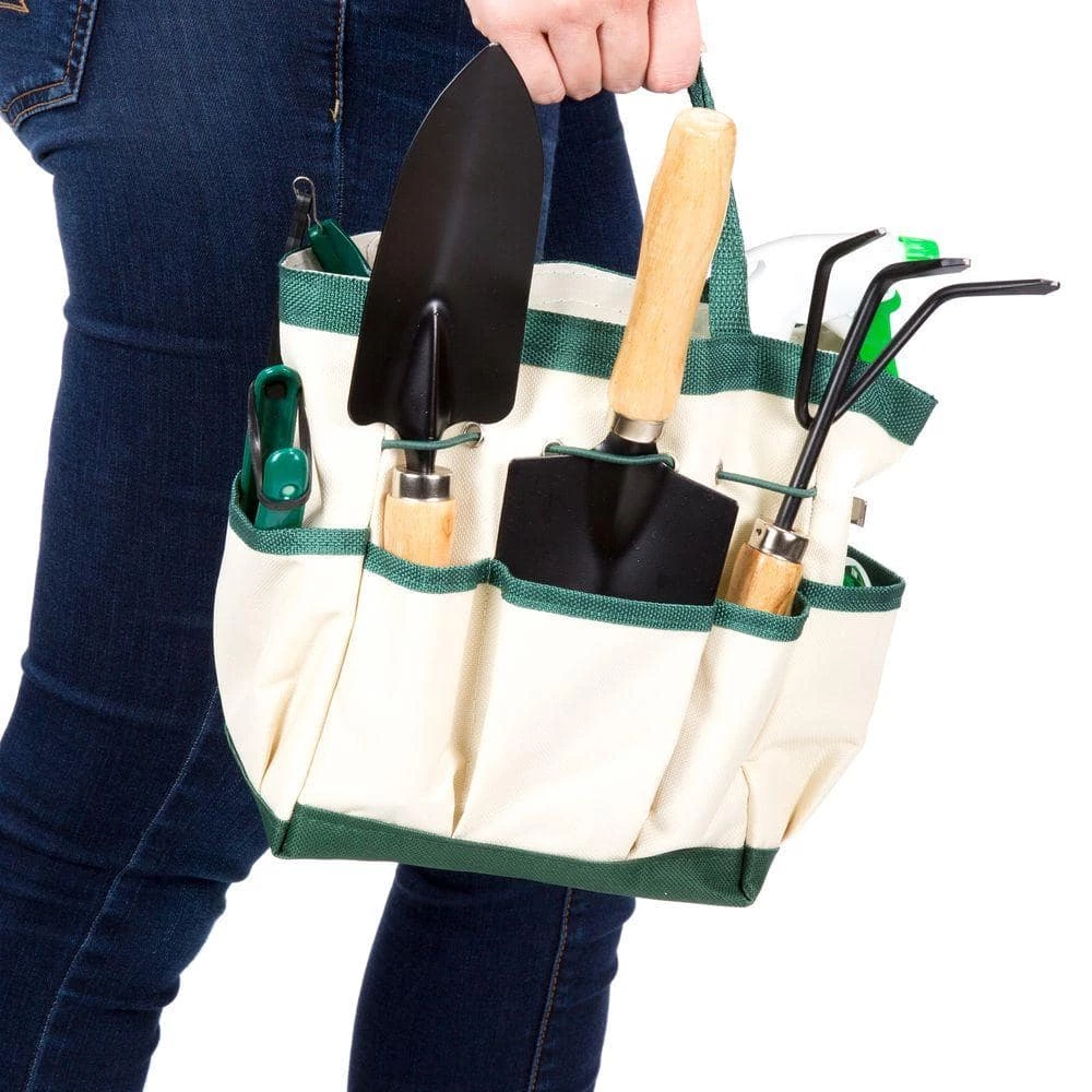 - CONVENIENT- The set come with all the tools you will need for a radiant flower or vegetable garden. The tote is also spacious and features 7 outside pockets with 5 elastic straps for safe and secure storage, even