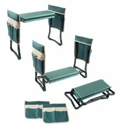 Comfortably keep your lawn or garden looking beautiful with the Gardening Kneeling Bench with Tool Pouches by Pure Garden. This dual-purpose bench features a durable steel frame that folds for compact storage, 2 handles with convenient tool pouches, detachable leg protectors and an EVA foam pad with ample cushioning for your knees, hips and back while kneeling. Whether you are planting flowers, pulling weeds or picking vegetables in the garden, this versatile bench will reduce aches and keeps your knees off the soiled ground.