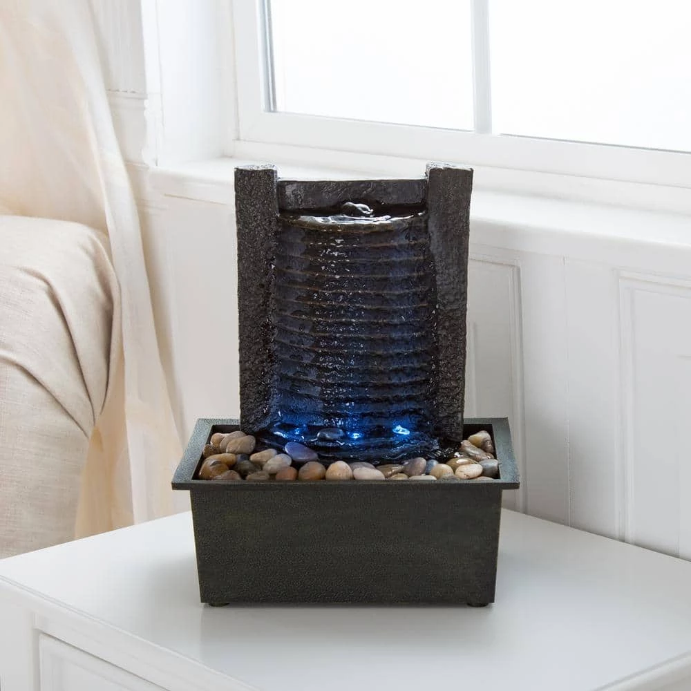 - UNIQUE DÉCOR WITH LED LIGHTING- This LED-lit waterfall fountain is truly an ideal blend of contemporary modern design, Zen elements, and natural charm, and it offers the tranquil and meditative sounds of running waters for a calming ambiance. The fountain includes river rocks to provide a more natural look and LED lights which help to illuminate the waters and offer a peaceful glow.