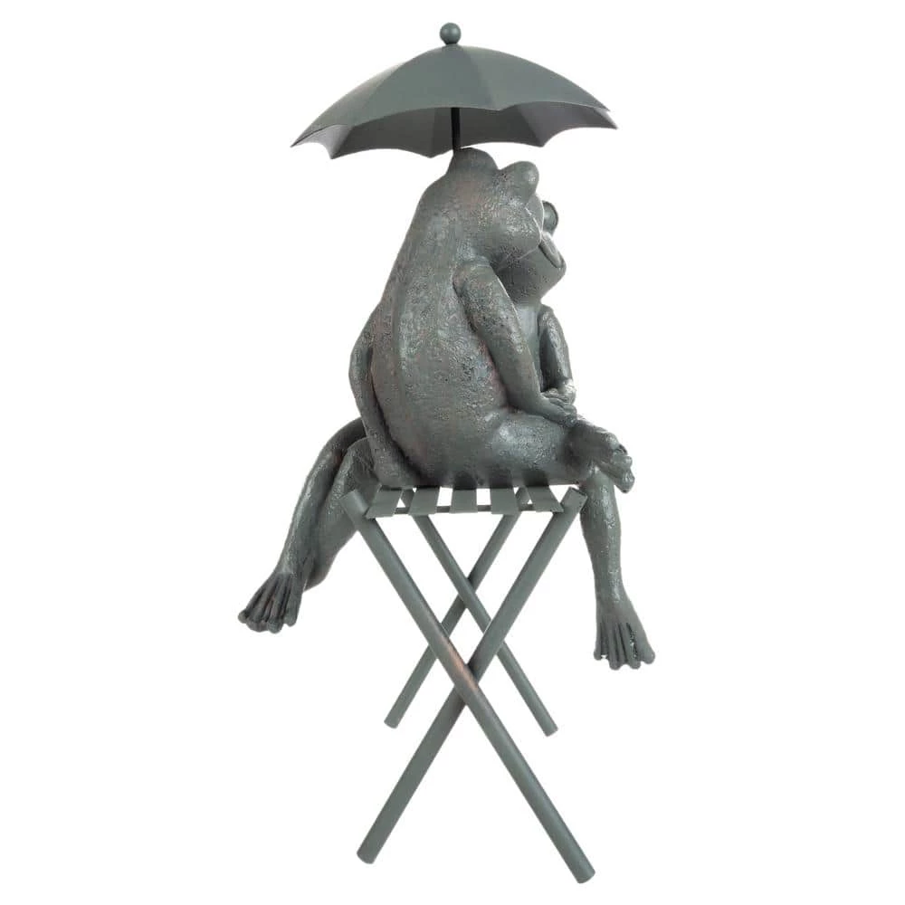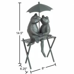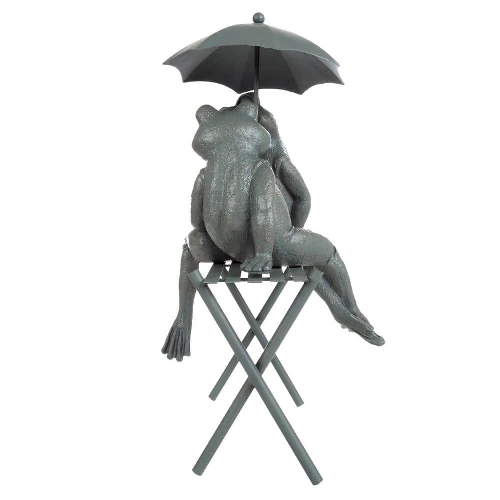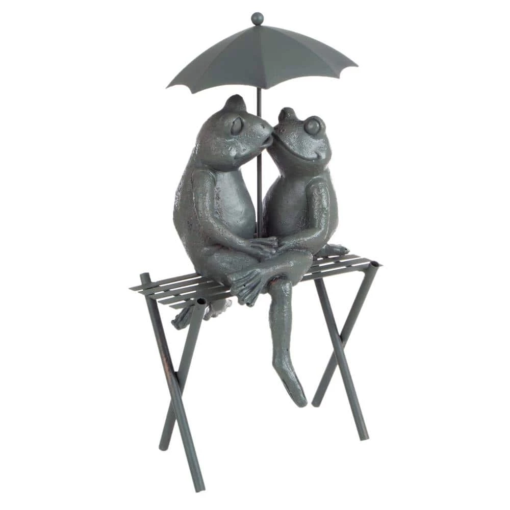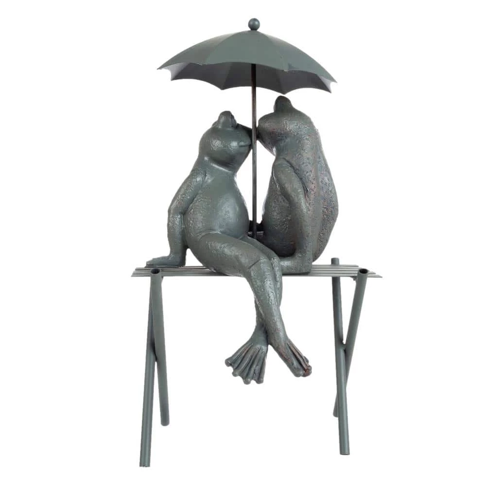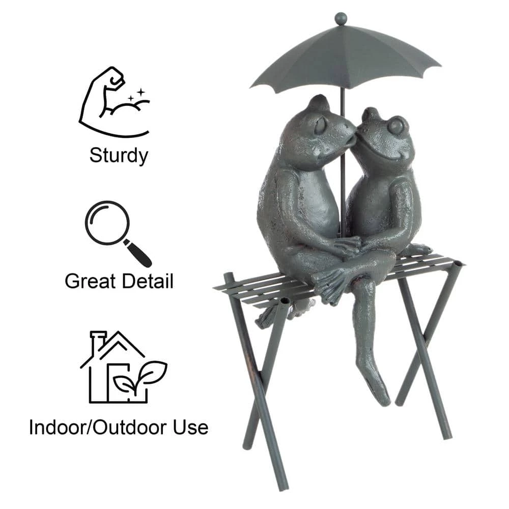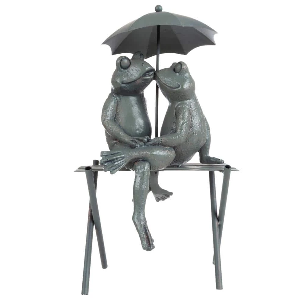 The Lawn and Garden Couple Frog Statue by Pure Garden is a beautiful addition to any outdoor space. The lovely frog couple statue features 2 frogs embracing on a park bench under an umbrella, its a wonderful conversation piece that adds a whimsical touch to any flower bed, fairy garden, backyard, or front porch. Made from a durable high-quality polyresin material that is designed to prevent cracks, chips and fading, this frog statuary will withstand any weather conditions. This delightful animal figurine is a fun and unique way to add a little romance to any home or garden.