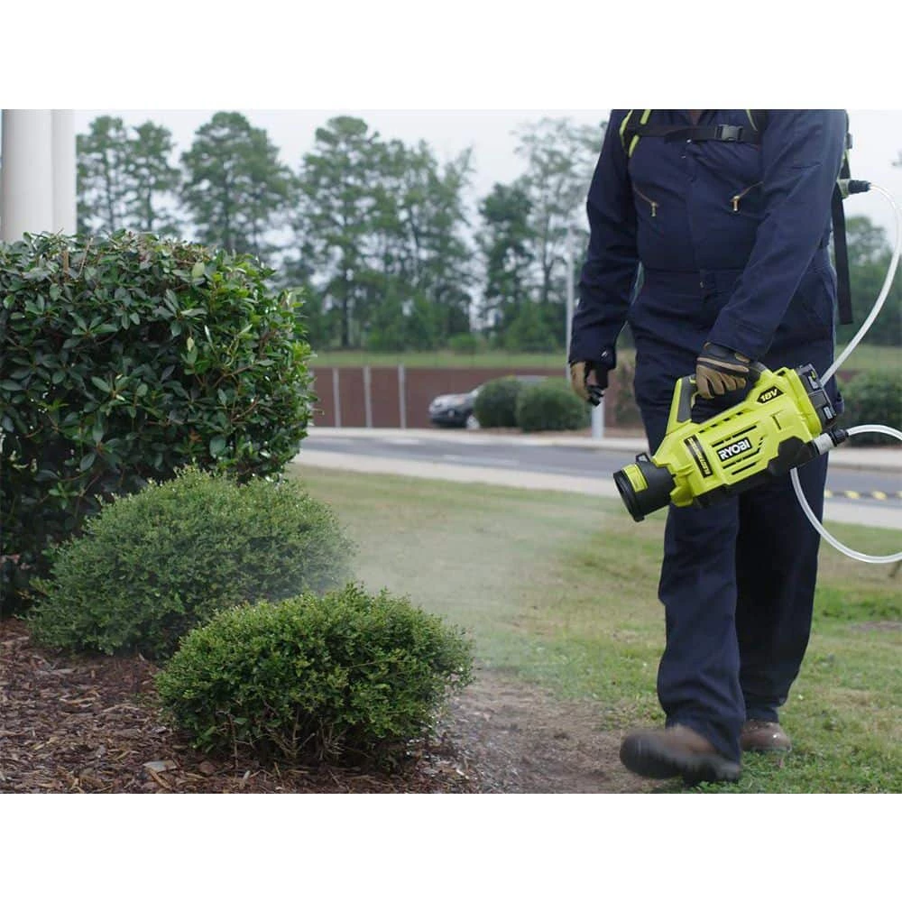 - Ryobi electrostatic sprayers utilize electrostatic charging technology to positively charge particles to allow solutions to cover surfaces quicker and more evenly, reducing chemical use and increasing efficiency