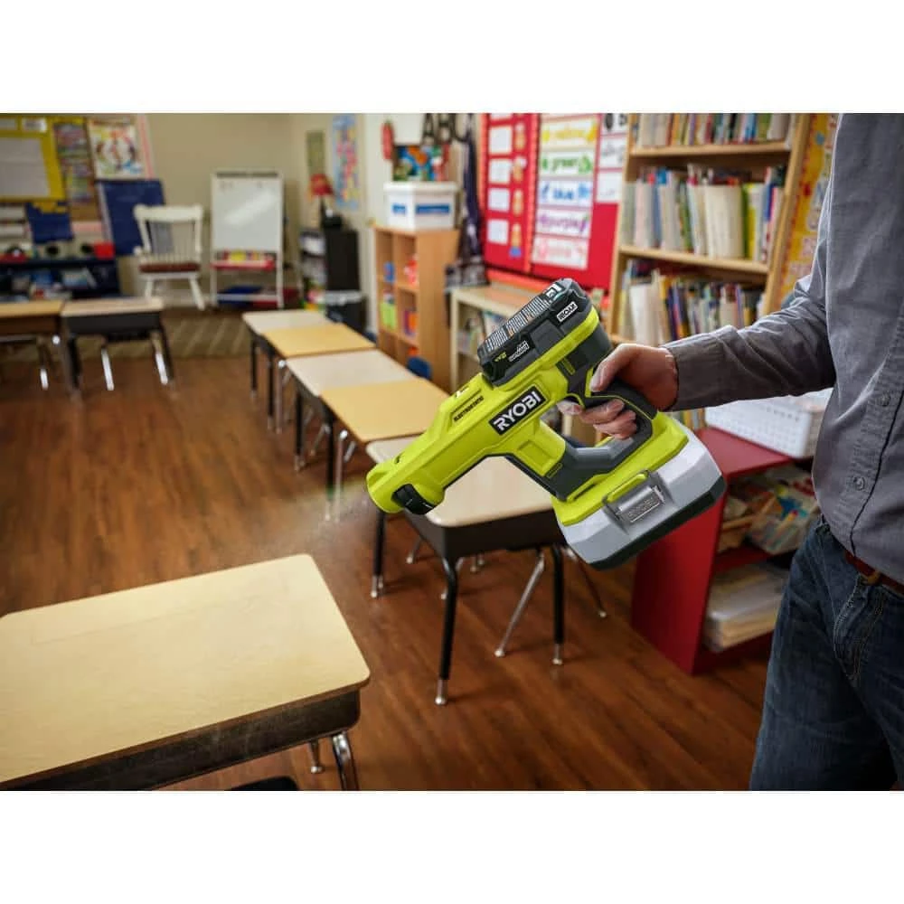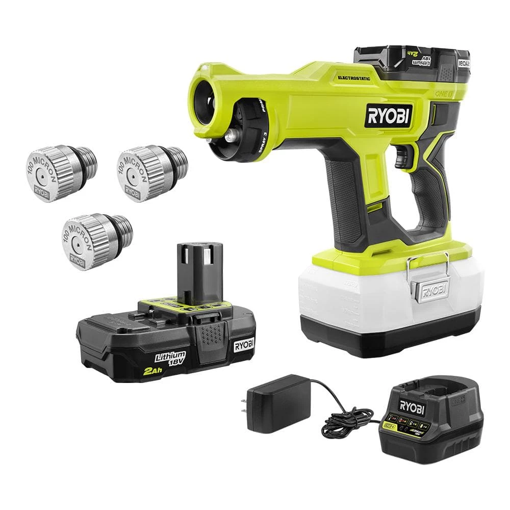 - Cordless Handheld Electrostatic Sprayer Kit: Part of the RYOBI 18V ONE+ System of over 260 cordless tools