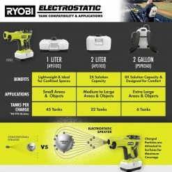 - RYOBI Electrostatic Technology for Maximum Coverage
