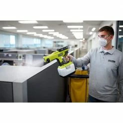 RYOBI introduces the 18V ONE+ Cordless Handheld Electrostatic Sprayer with HIGH PERFORMANCE 4.0 Ah Battery & Charger Kit. RYOBI Electrostatic Sprayers utilize electrostatic charging technology to positively charge particles to allow solutions to cover surfaces quicker & more evenly, reducing chemical use & increasing efficiency. These charged particles enable solutions to more effectively wrap around a wide range of high touch surfaces. This handheld electrostatic sprayer features an ergonomic design to reduce user fatigue & increase portability. Spray up to 45 tanks per charge with an 18V ONE+ 2.0 Ah battery. This sprayer reaches up to 5 ft. & has an on/off switch to activate the electrostatic technology. The tool-free 3-in-1 adjustable turret allows you to easily change between 50, 75, & 100 mic for a variety of spray patterns, cleaning applications, & chemical dwell time requirements. The tool-free removable nozzles allow users to easily clean & replace nozzles. The removable 1-liter tank has a flat base for hands-free, easy filling. The included 4.0 Ah Battery & 18V Charger are compatible with all RYOBI 18V ONE+ Tools. Best of all, it is part of the RYOBI ONE+ System of over 260 cordless tools that all work on the same battery platform. Backed by the RYOBI 3-Year Manufacturer’s Warranty, the 18V ONE+ Cordless Handheld Electrostatic Sprayer includes an 18V ONE+ HIGH PERFORMANCE 4.0 Ah Battery, an 18V Charger, & an operator’s manual.