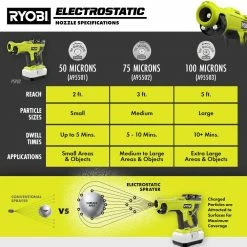 - Electrostatic Sprayer: Spray Up to 45 Tanks per Charge with the included RYOBI ONE+ 18V 2.0 Ah Battery
