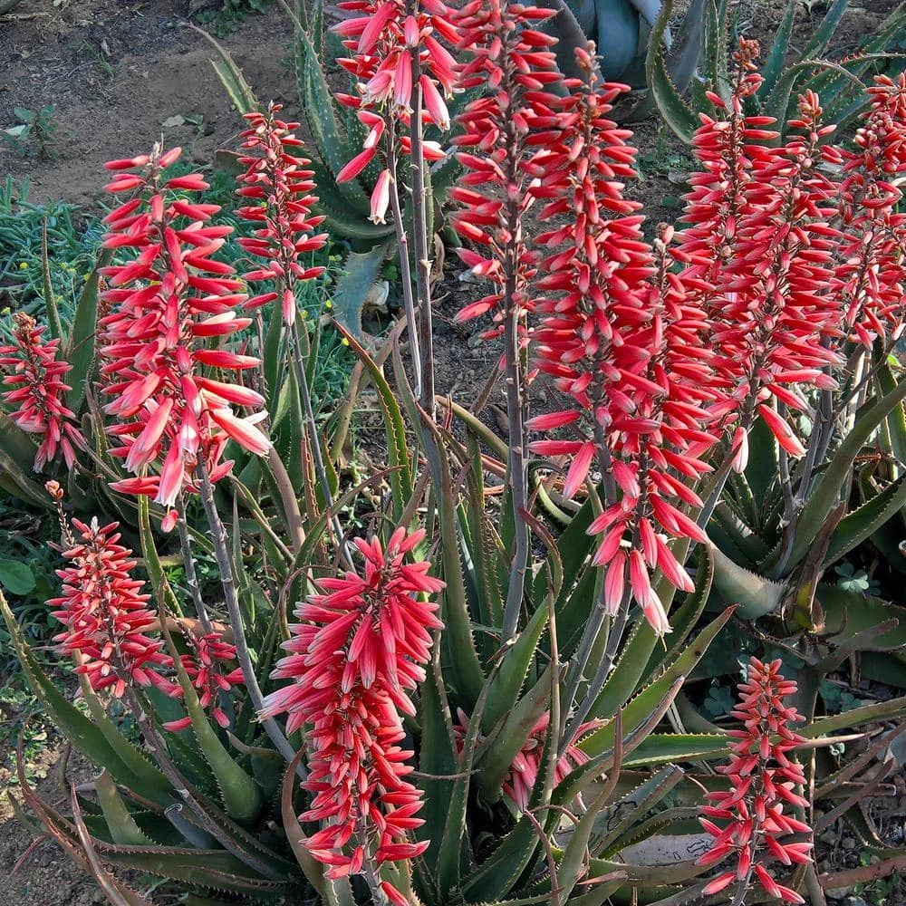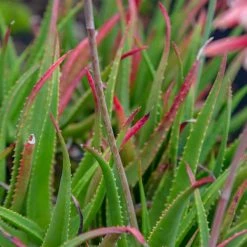 The Safari Rose Aloe plant from the SOUTHERN LIVING Plant Collection is a reblooming succulent with vibrant red blooms. Most of these aloes will bloom the first year that you plant it. After that, your aloe will re-bloom annually from summer through winter. This aloe produces classic, smooth aloe foliage that features teeth along the edges. Moreover, this foliage is attractive green with blue-grey hues mixed in. The Safari Rose Aloe has a naturally clumping habit and is, and maxes out at 1-1.5 ft. H x 3.5 ft. W. Once well established in your landscape, this easy care succulent won’t require much maintenance or attention. Gardeners in dry areas should give this Aloe a shot due to its drought tolerance. This succulent is ideal for xeriscape gardens. In addition, the Safari Rose Aloe is also fantastic for Southern gardens due to its heat tolerance. Use it in rock gardens, mass plantings, or as a ground cover plant. Otherwise, plant the Safari Rose Aloe in a container. This also allows you to move it indoors to protect it from hard freezes.