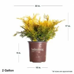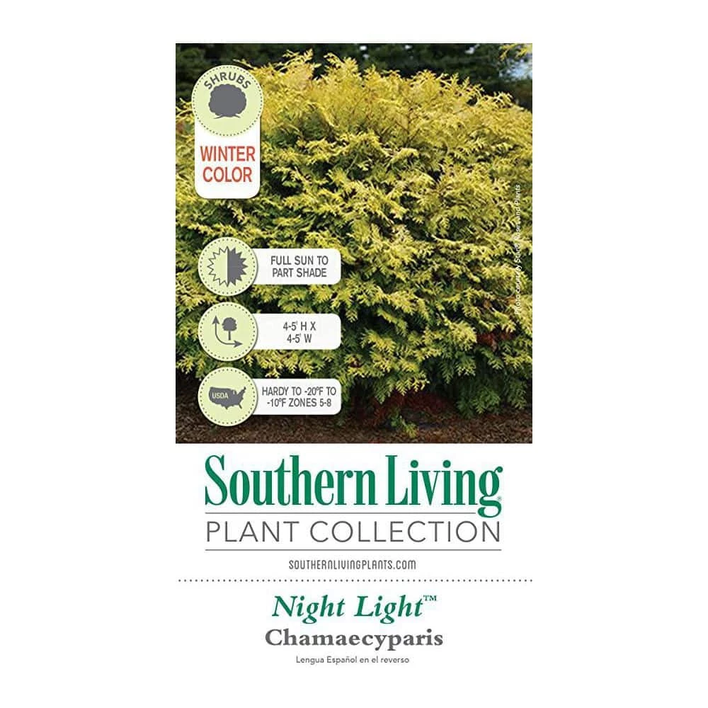 Night Light Chamaecyparis (false cypress) from the Southern Living Plant Collection is the colorful evergreen foliage you’ve been looking for. Chartreuse colored foliage emerges on the outermost portion of the plant, while darker green foliage is hidden just below. The outermost foliage fades to bronze in the winter, while the inner portion remains green, ensuring your garden gets 12-months of color from this gorgeous evergreen. This cypress has a dense mounded habit that is easily shaped for colorful, low growing ombre hedges when planted in mass. Or plant it in a container to give your front door or back patio and exciting burst of chartreuse color that will pair well with red, purple or darker green weeping perennials. If planting a hedge, space your Night Light approximately 3 ft. apart to create a seamless hedge. If planting as a specimen or mixed garden, space them 5 ft. or more apart to allow Night Light to achieve its mature width. Night Light is suited to a variety of lighting conditions from Full Sun to Part Shade. In full sun, you won’t have to worry about scorched foliage, this false cypress can stand the heat.