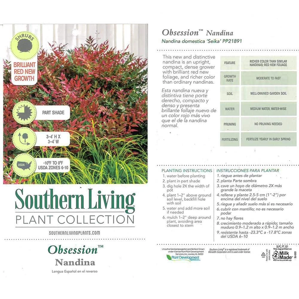 The Obsession Nandina from the Southern Living Plant Collection is a new and unusual variety of the classic Nandina domestica. The Obsession features unique scarlet-red young foliage and blue-green mature foliage. This gorgeous medley brings tremendous texture and color-appeal to any landscape or container garden all year long!