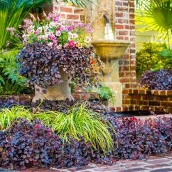 Loropetalum Purple Pixie is a dwarf-sized purple leaf loropetalum that grows to a mature height of only 1 ft.-2 ft. with weeping branches of leaves that trail to a length of 4 ft.-5 ft. It makes a great ground cover and can also be used to add unique color and form to containers, window boxes or hanging baskets. Showy bright pink flowers appear in spring. The evergreen purple leaves hold their color all year.