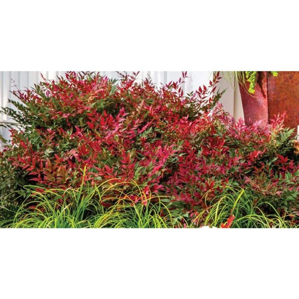 Obsession Nandina Multicolor is a beautiful compact evergreen shrub with vibrant red and green foliage. This shrub is mature at 3-4 ft. tall and 3-4 ft. wide. This versatile shrub looks amazing in so many ways: as accents, borders, hedges and containers. Obsession Nandina is thriving in full sun to partial sun and it has an upright growth habit. Year-round interest. Look no further, this is a wonderful shrub that will add more colors for your garden and landscape. Buy it today at Bell Nursery Shrub Collection!